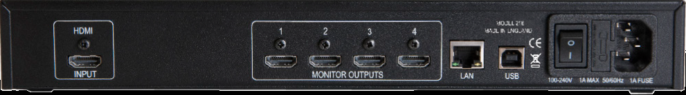 One HDMI1.4 input (4K30), four HDMI1.3 (HD) outputs