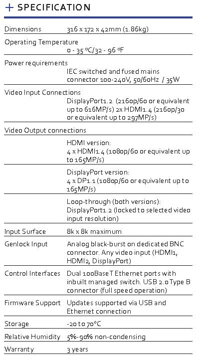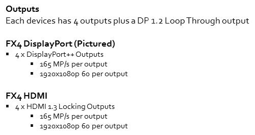 Each unit comes with 1 DisplayPort 1.2 and 2 HDMI 1.4 inputs.