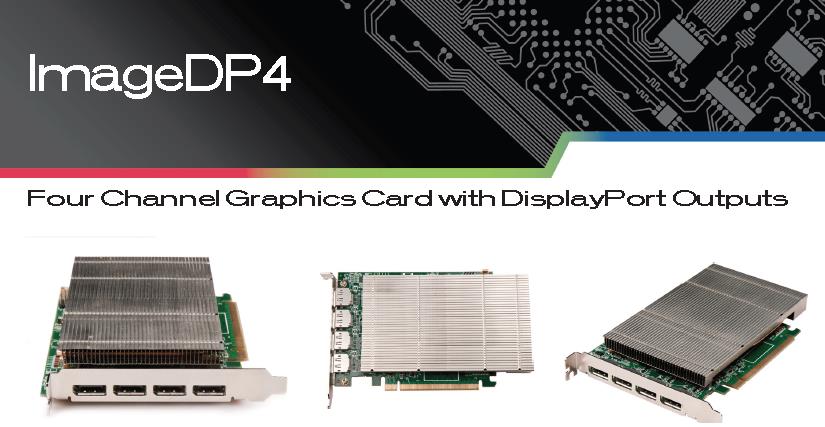 The ImageDP4 card natively supports four full-sized DisplayPort outputs for the convenience of high resolution, locking cable connectors and significantly longer cable lengths. Air flow management is optimised through the use of passive cooling, providing high reliability for any multi screen solution.